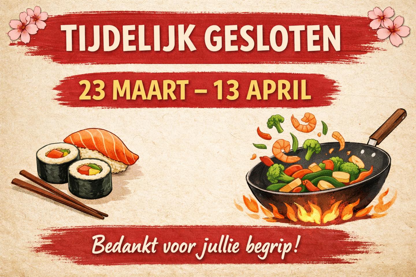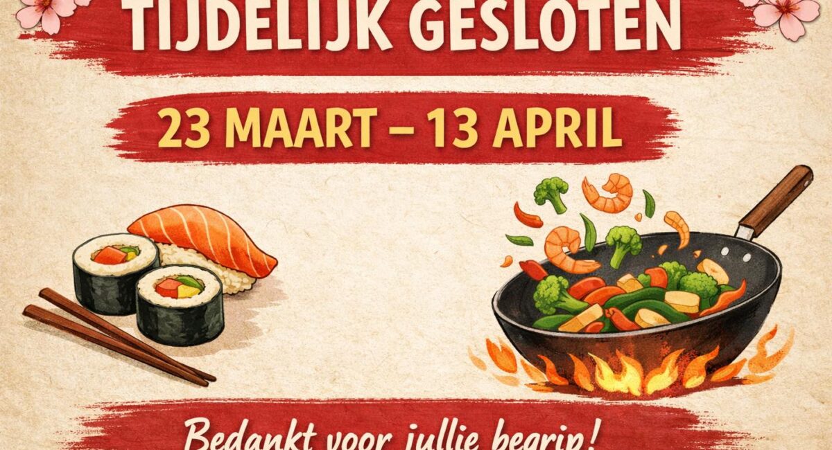 Nog even een herinnering: wij zijn van 23 maart t/m 13 april gesloten wegens omstandigheden.