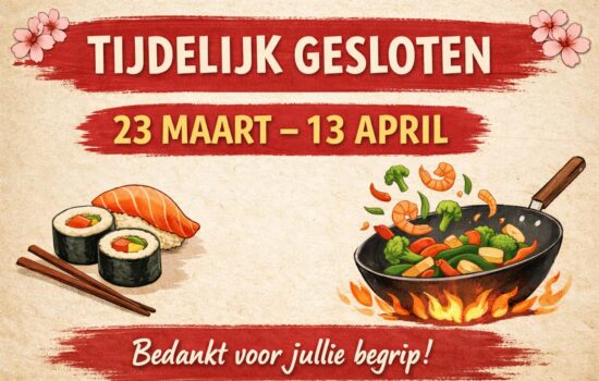 Beste klanten, Nog even een herinnering: wij zijn van 23 maart t/m 13 april gesloten wegens omstandigheden. Zo voorkomen jullie een dichte deur 😉 Bedankt voor jullie begrip! Team Wok’n [...]